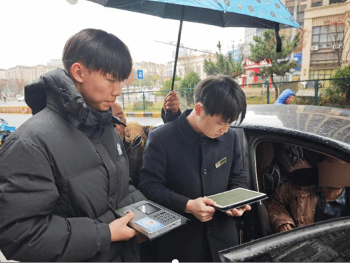 为切实解决老人的困难,网点迅速启动便民服务预案。综合服务经理携带展业设备,撑着雨伞来到老人的车旁,在雨中为老人现场办理业务。办理过程中,工作人员俯身耐心细致地引导老人完成身份核验、签字确认等每一个步骤。短短十几分钟,社保卡激活业务便顺利办结。